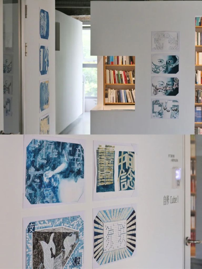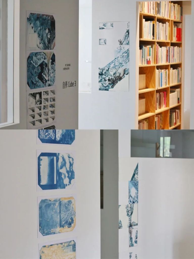 The third floor is used as a study room space, with more white space on the wall and more complete color blocks. On display are some of the artist’s original manuscripts, including watercolor painting, cyanotype, collage and other expression techniques.