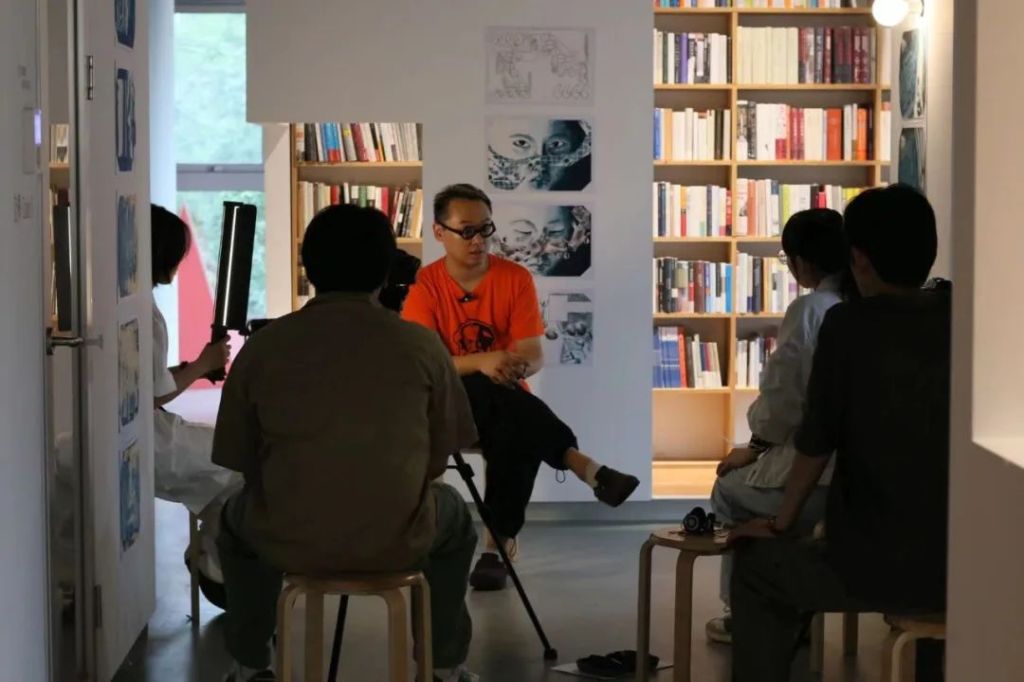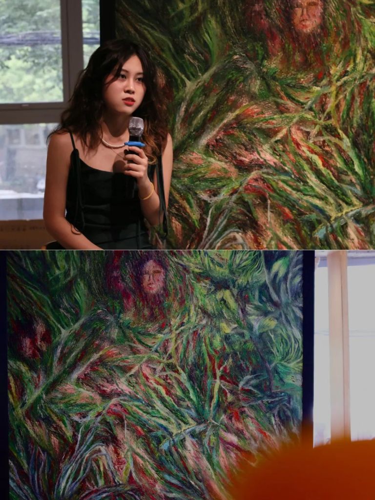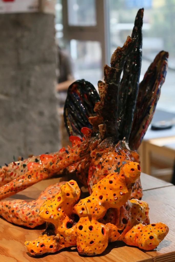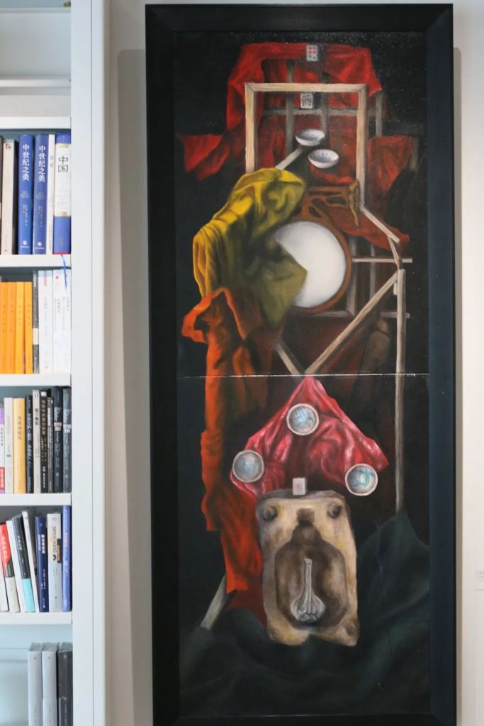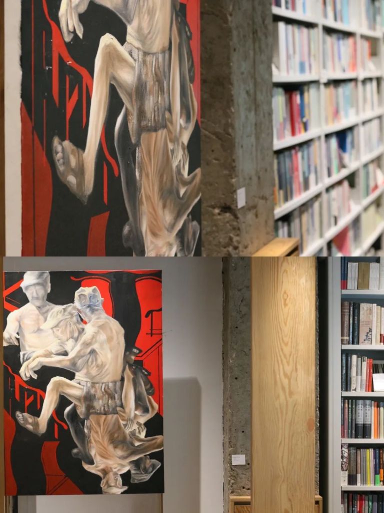 The second floor is mainly composed of the artist’s large-format oil paintings and ceramic installations, which are contrasted with and differentiated from the bookshelves with smaller and denser color blocks on the second floor.