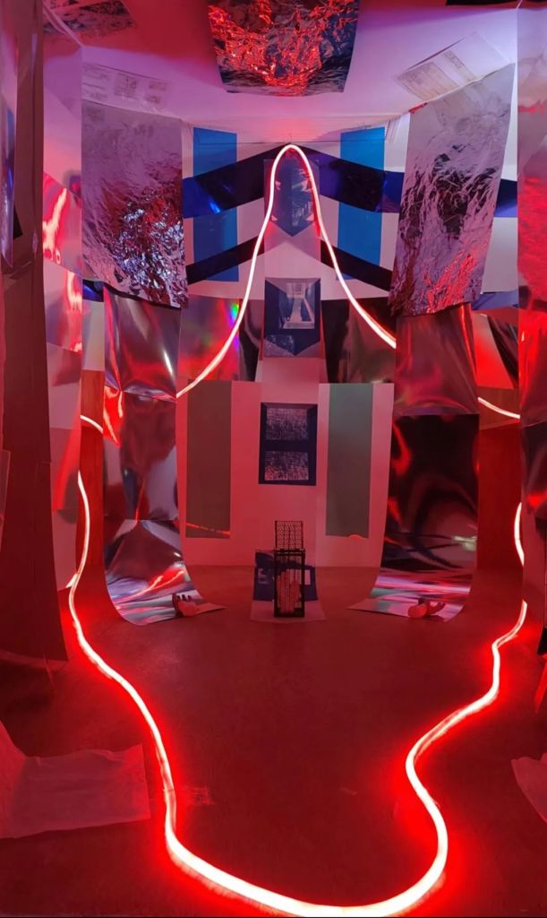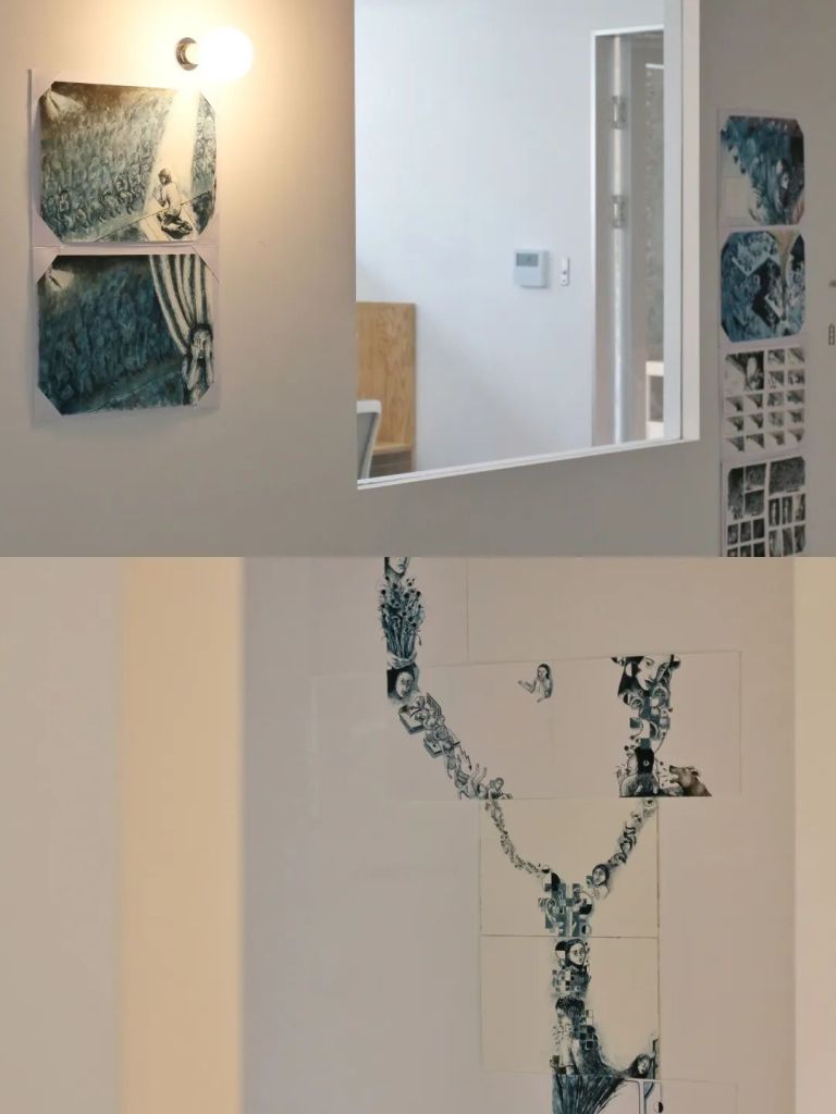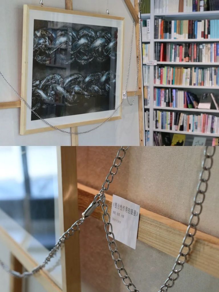A study room on the innermost side of the third floor was turned into a spatial interactive installation in this exhibition, breaking through the limitations of two-dimensional works through light and the three-dimensional composition of the work.