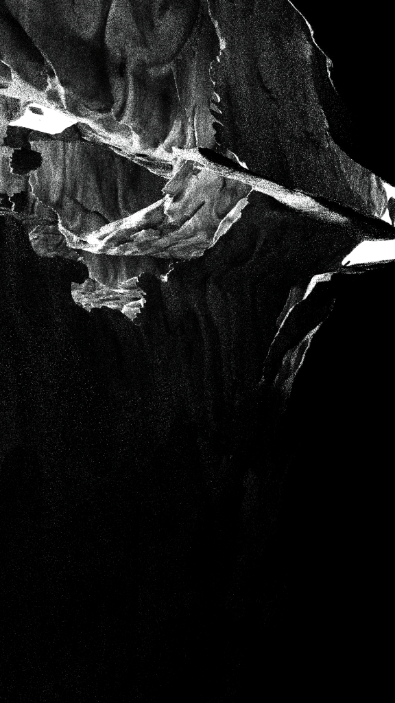 “Noir” delves into the interplay between isolation and exploration within unfamiliar terrains. The monochromatic palette accentuates the starkness of the alien environment, while the solitary figure’s journey through the cave symbolizes a quest for understanding amidst the unknown. This piece reflects on the human experience of confronting the unfamiliar, drawing parallels between physical exploration and internal introspection.